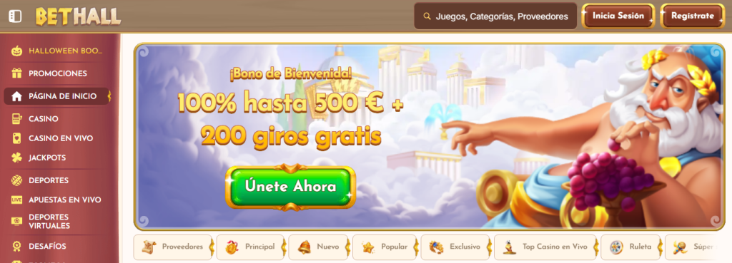 Bethall Casino cuenta con una amplia selección de juegos diseñada para satisfacer a todo tipo de jugadores. Desde las tragamonedas más populares hasta los juegos de mesa clásicos y el casino en vivo, la plataforma combina calidad, variedad y tecnología de proveedores líderes del sector. Todos los títulos están optimizados para funcionar sin problemas tanto en ordenadores como en dispositivos móviles.
