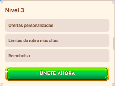 | Nivel 3 | Ofertas personalizadas, límites de retiro más altos, reembolso. |