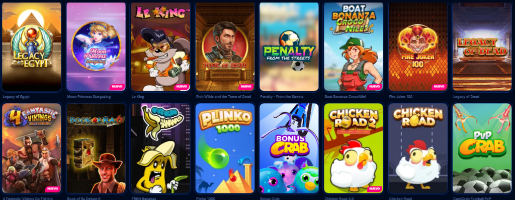 - Juegos Instantáneos: Rasca y gana, crash games y minijuegos rápidos para partidas más dinámicas.