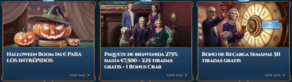 RichRoyal Casino destaca por su estilo elegante, su amplia variedad de juegos y sus atractivas promociones, especialmente el generoso bono de bienvenida del 275% hasta 7.500 € + 225 tiradas gratis + 1 Bonus Crab. La plataforma ofrece una experiencia completa tanto en versión de escritorio como en móvil, con un diseño moderno y tiempos de carga óptimos.
