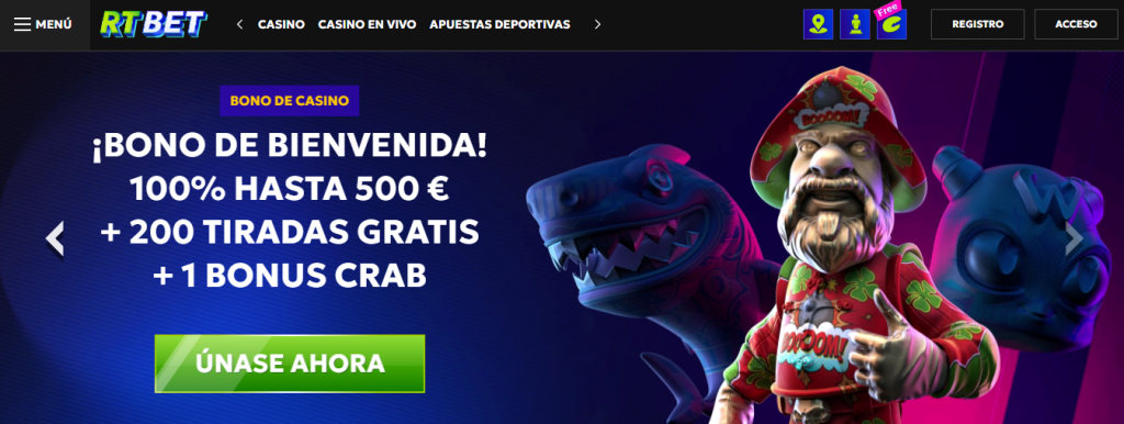 RTBet Casino se posiciona como una opción moderna y completa dentro del mercado internacional de juegos online. Destaca por su amplia variedad de tragamonedas, ruleta, blackjack y casino en vivo, respaldados por proveedores reconocidos y una interfaz dinámica adaptada a todos los dispositivos. Su bono de bienvenida de hasta 1.000 € y sus promociones semanales lo convierten en una alternativa atractiva para quienes buscan variedad y recompensas continuas.