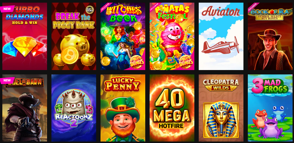 Gran variedad de juegos de tragamonedas, mesa y casino en vivo.