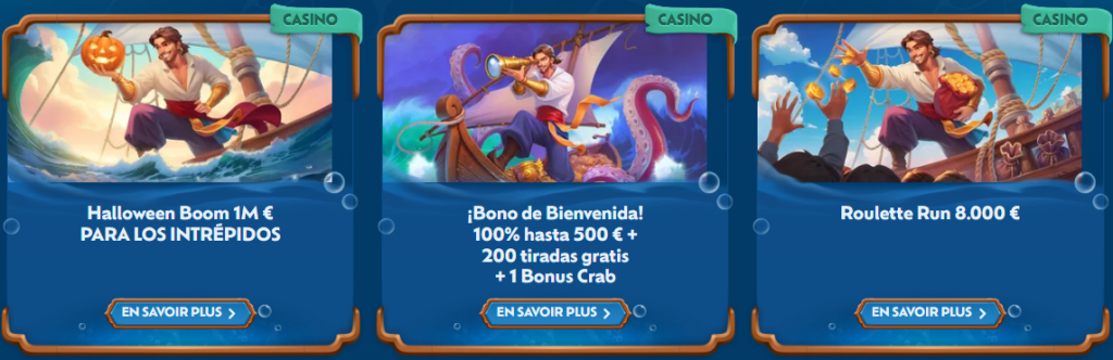 Winbay Casino opera con licencia de Anjouan (año no divulgado). Ofrece bono de bienvenida 100% hasta 500 € + 200 giros + 1 “Bonus Crab”; depósito mínimo 10 €. Requisitos de apuesta: importe del bono 35x y giros 40x; para las condiciones generales, consulta el punto 7.7 de sus T&Cs. Retirada mínima: no especificada públicamente. Métodos de pago: no detallados de forma oficial; verifica los disponibles en la caja del casino.